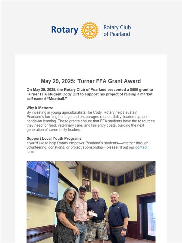 May 29, 2025: Turner FFA Grant Award